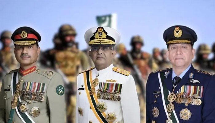فیلڈ مارشل سید عاصم منیر، نیول چیف ایڈمرل نوید اشرف اور ایئر چیف مارشل ظہیر احمد بابر سدھو نے مسلح افواجِ پاکستان کی جانب سے قوم کو عیدالفطر کی مبارکباد پیش کی ہے۔