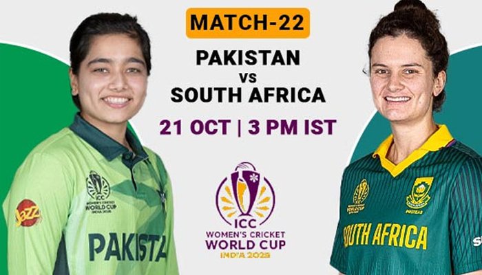 انٹرنیشنل کرکٹ کونسل (آئی سی سی )ویمنزورلڈ کپ کے22ویں میچ میں آج پاکستان اور جنوبی افریقہ کی ویمنزکےمابین جوڑپڑےگا۔