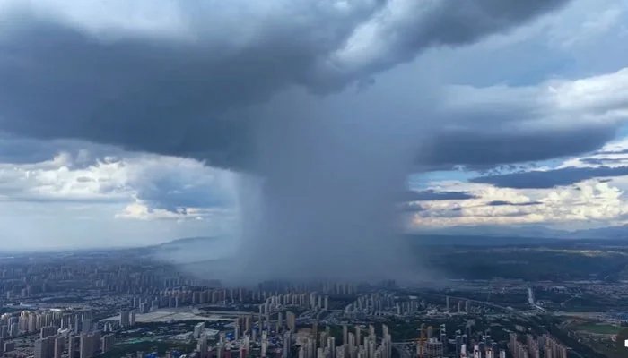 چین کے شہر شیان میں اچانک کلاؤڈ برسٹ ہوا، جس کے مناظر کیمرے کی آنکھ نے محفوظ کر لیے۔