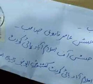 اسلام آباد:(پاکستان ٹوڈے) اسلام آباد ہائی کورٹ کا فریقین کو نوٹس جاری 24 اپریل تک جواب طلب، سمیع ابراھیم کا نام کیوں ...اپریل 8, 2024اعلی عدلیہ کے ججز کو دھمکی آمیز خطوط ملنے کا معاملہ