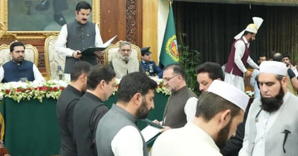 اکتوبر 31, 2025520خیبر پختونخوا کابینہ کے13 ارکان نےاپنےعہدوں کا حلف اٹھالیا۔ حلف برداری کی تقریب خیبرپختونخوا گورنرہاؤس میں ہوئی،گورنرفیصل کریم کنڈی نےکابینہ ارکان سے عہدوں کاحلف لیا۔اس موقع پر وزیرِ اعلیٰ محمد سہیل آفریدی، سپیکر صوبائی اسمبلی بابر سلیم سواتی، ارکانِ قومی و صوبائی اسمبلی، پارٹی قائدین اور دیگر اعلیٰ حکام نے ...طلبا کیلئے اہم خبر:تعلیمی اداروں میں سموگ اور سردیوں کی چھٹیاں متوقع