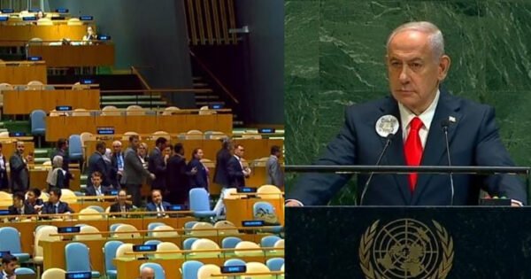 ستمبر 27, 2025380اسرائیلی وزیراعظم نیتن یاہوکےاقوام متحدہ جنرل اسمبلی میں خطاب کےدوران عالمی برادری نےبائیکاٹ کیا۔ اقوام متحدہ کی جنرل اسمبلی سے اسرائیلی وزیراعظم نیتن یاہو کے خطاب کے دوران عالمی برادری نے اسرائیلی وزیراعظم سےبھرپورنفرت کااظہارکرتےہوئےنیتن یاہوکی تقریرکےدوران یواین جنرل اسمبلی کاہال خالی کردیا۔ اسرائیلی وزیراعظم پریشانی کی حالت میں خاموش ...جنگ جیت لی ہے،اب ہم امن جیتنےکےخواہش مندہیں،وزیراعظم