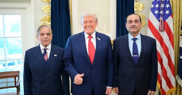 ستمبر 26, 2025790وزیراعظم شہبازشریف کی امریکی صدرڈونلڈٹرمپ سےملاقات ،وزیراعظم نےسیکیورٹی وانٹیلی جنس تعاون کومزیدبڑھانےکی ضرورت پرزورددیا۔ وزیراعظم ہاؤس کی جانب سےجاری اعلامیہ میں کہاگیاکہ وزیراعظم شہبازشریف اورفیلڈمارشل عاصم منیرنےامریکی صدر ڈونلڈ ٹرمپ سےملاقات کی،امریکی نائب صدرجےڈی وینس اورسیکرٹری اسٹیٹ مارکوروبیوبھی ملاقات میں شریک ہوئے۔اوول آفس میں ہونیوالی ملاقات دوستانہ اور گرمجوشی کےماحول ...اسٹاک ایکسچینج کی تاریخی سطح عبورکرنےپروزیراعظم شہبازشریف کااظہارمسرت
