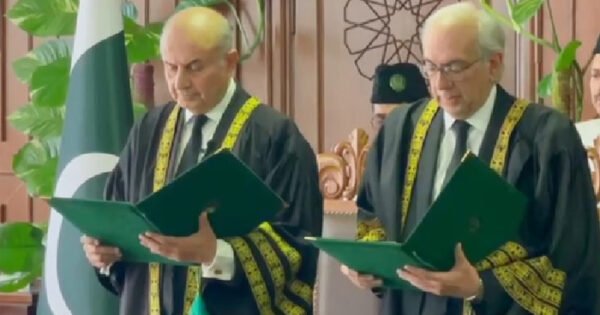 اپریل 21, 2025700سپریم کورٹ کےسینئرترین جج جسٹس منصورعلی شاہ نےقائم مقام چیف جسٹس آف پاکستان کے عہدے کاحلف اٹھالیا۔ حلف برداری کی تقریب کاانعقادسپریم کورٹ میں کیاگیاجس میں جسٹس منیب اختر نے جسٹس منصور علی شاہ سے قائم مقام چیف جسٹس پاکستان کا حلف لیا۔،تقریب حلف برداری میں وکلااورسپریم کورٹ سٹاف نے ...بنگلہ دیش:پولیس کاحسینہ واجدکی گرفتاری کیلئےانٹرپول سےرابطہ