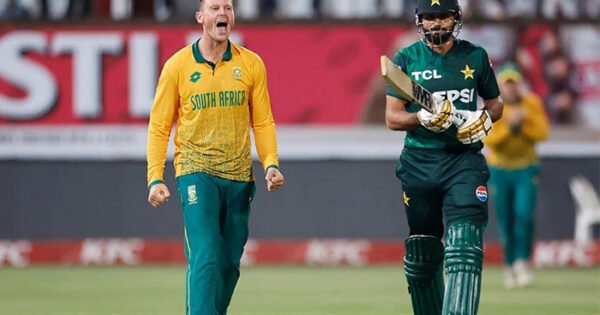 دسمبر 11, 20241050پہلےٹی ٹوئنٹی میچ میں جنوبی افریقہ نےپاکستان کو11رنزسےشکست دےکرسیر یزمیں برتری حاصل کرلی۔ ڈربن میں کھیلےگئے ٹی ٹوئنٹی میچ میں جنوبی افریقہ کےکپتان ہینرک کلاسن نےٹاس جیت کرپہلے بیٹنگ کرنےکافیصلہ کیا۔جوکےکافی فائدہ مندثابت ہوا۔ جنوبی افریقہ نےپہلےبیٹنگ کرتےہوئےمقررہ 20اوورزمیں9وکٹوں کےنقصان پر183رنزبنائے۔ جنوبی افریقہ کی جانب سے ڈیوڈ ملر 82 اور ...فیلڈ جنرل کورٹ مارشل کی کارروائی، فیض حمیدکوباضابطہ طور پر چارج شیٹ کردیا گیا