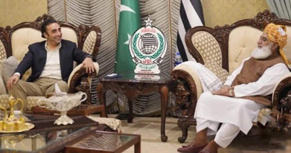 اکتوبر 19, 20241000چیئرمین پیپلزپارٹی بلاول بھٹوزرداری کی سربراہ جمعیت علمااسلام (ف) مولانافضل الرحمان کےساتھ رات گئےملاقات ہوئی،دونوں رہنماؤں کے درمیان آئینی ترمیم کےحوالےسےاہم گفتگوہوئی۔ چیئرمین پیپلزپارٹی وفدکےہمراہ رات گئےمولانافضل الرحمان کی رہائش گاہ پہنچ گئے ،بلاول بھٹوکےہمراہ دیگر پی پی رہنما نوید قمر اور مرتضی وہاب بھی موجود تھے۔ ذرائع کے مطابق ...خصوصی کمیٹی سےمنظورشدہ آئینی ترامیم کاڈرافٹ سامنےآگیا
