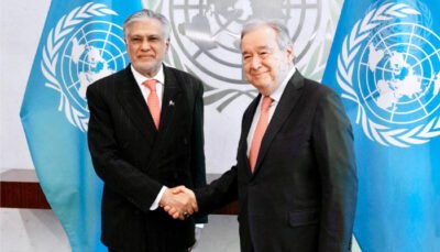 اپریل 15, 2026160اقوام متحدہ کے سیکرٹری جنرل انتونیو گوتیرس نے نائب وزیراعظم و وزیر خارجہ اسحاق ڈار کو ٹیلی فون کر کے ...پاکستان کی سیاسی و عسکری قیادت کی کوششوںسے مشرق وسطی میں جنگ بندی ممکن ہوئی،نیول ...