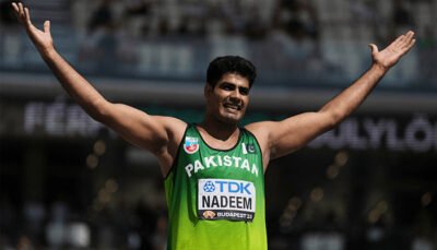 ستمبر 17, 2025220فخرپاکستان ارشدندیم نے85.28 میٹر کی تھرو پھینک کرورلڈ ایتھلیٹکس چیمپئن شپ کےفائنل کیلئے کوالیفائی کرلیا۔ ورلڈ ایتھلیٹکس چیمپئن شپ کےفائنل ...جی ایچ کیو حملہ کیس: جیل ٹرائل کا نوٹیفکیشن منسوخ، عمران خان ویڈیو لنک پر ...