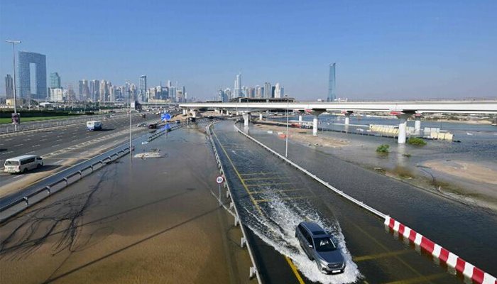 متحدہ عرب امارات میں موسلادھار بارش سےجل تھل ایک ہوگیا۔