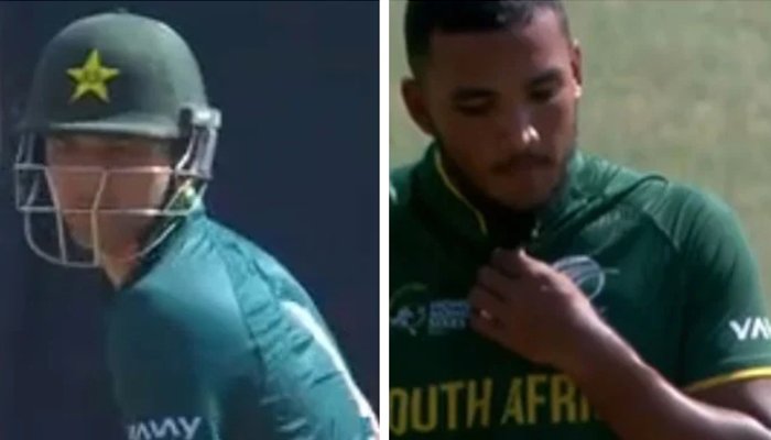جنوبی افریقہ کی جانب سےعبد اللہ بیومی اور کپتان جارڈن مورس ایک، ایک رن کےمہمان ثابت ہوئے جبکہ جورک وین نے 40 رنز کی اننگزکھیلی۔ بلکی سمجمن اور یتھن جان بالترتیب 26 اور 29 رنز بناکے ناٹ آؤٹ رہے۔