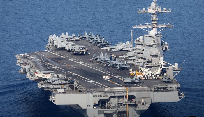 دنیا کا سب سے بڑا طیارہ بردار بحری جہاز یو ایس ایس جیرالڈ آر فورڈ 300 دن سے زائد طویل سمندری تعیناتی مکمل کرنے کے بعد واپس امریکہ روانہ ہو رہا ہے۔