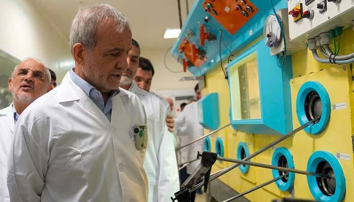 غیرملکی خبررساں ایجنسی کی رپورٹ کےمطابق ایران کے صدر مسعود پزشکیان نےایٹمی توانائی ادارے کادورہ کیااورتازہ صورتحال پربریفنگ لی۔