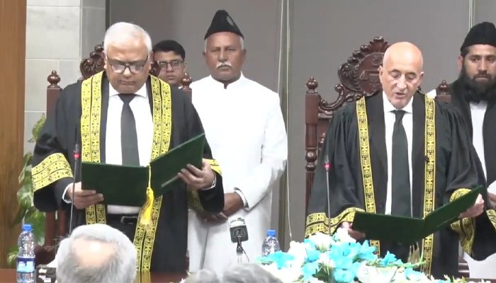 آئینی عدالت کےچیف جسٹس امین الدین خان نےجسٹس کےکے آغا سے عہدےکا حلف لیا،تقریب حلف برداری میں جسٹس عامرفاروق ،جسٹس حسن اظہررضوی اورجسٹس علی باقرنجفی نےشر کت کی جبکہ اسلام آبادہائیکورٹ کےچیف جسٹس سردارمحمدسرفرازڈوگراوردیگرہائیکورٹ ججزبھی شریک ہوئے۔