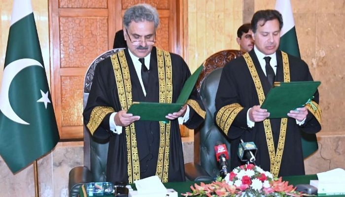 تقریب حلف برداری میں سپریم کورٹ کےججزبھی شریک ہوئے اور سینئر وکلا نے بھی تقریب میں شرکت کی۔