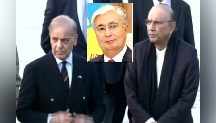 صدرمملکت آصف علی زرداری اوروزیراعظم محمدشہبازشریف نےراولپنڈی نور خان ایئر بیس پرقازقستان کے صدر کا استقبال کیا۔