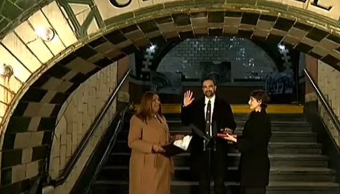 غیرملکی خبررساں ایجنسی کی رپورٹ کےمطابق حلف برداری کی تقریب مین ہٹن کے ایک قدیم اور تاریخی سب وے اسٹیشن’’اولڈ سٹی ہال‘‘ میں ہوئی۔