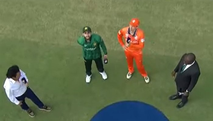 آئی سی سی ٹی ٹوئنٹی ورلڈکپ کےافتتاحی میچ میں پاکستان نےنیدرلینڈکےخلاف ٹاس جیت کرفیلڈنگ کافیصلہ کیاہے۔