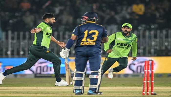 پاکستان کی جانب سے ابرارا حمد اور حارث رؤف نے تین، تین کھلاڑیوں کوپویلین کی راہ دکھائی۔