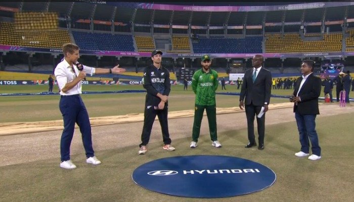 آئی سی سی ٹی ٹوئنٹی ورلڈکپ کےسپرایٹ مرحلےمیں پاکستان اورنیوزی لینڈکامیچ بارش کےباعث منسوخ ہونےپردونوں ٹیموں کوایک ایک پوائنٹ مل گیا۔