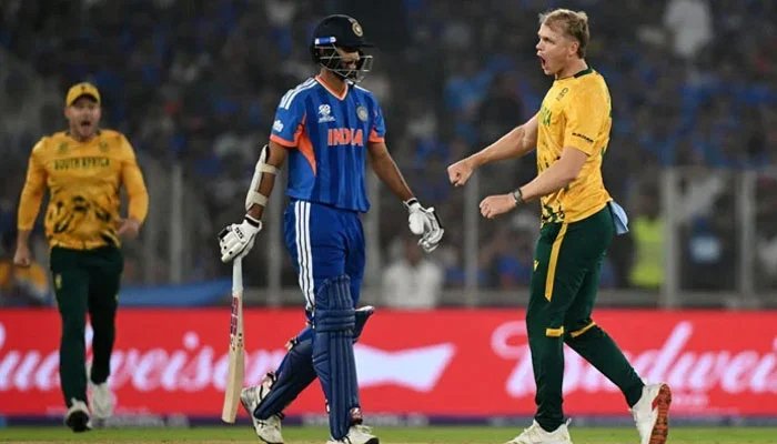 بھارتی شہراحمدآبادمیں کھیلےگئےآئی سی سی ٹی ٹوئنٹی ورلڈکپ کےسپرایٹ مرحلے کےمیچ میں ساؤتھ افریقہ کی ٹیم نےٹاس جیت کرپہلے بیٹنگ کرنےکافیصلہ کیا، پروٹیزنےپہلے کھیلتےہوئےمقررہ 20 اوورز میں 7 وکٹ پر 187 رنز بنائے۔ہدف کےتعاقب میں بھارتی بیٹنگ لائن ناکام ہوگئی،پوری بھارتی ٹیم 19 ویں اوور میں 111 رنز پرڈھیرہوگئی۔